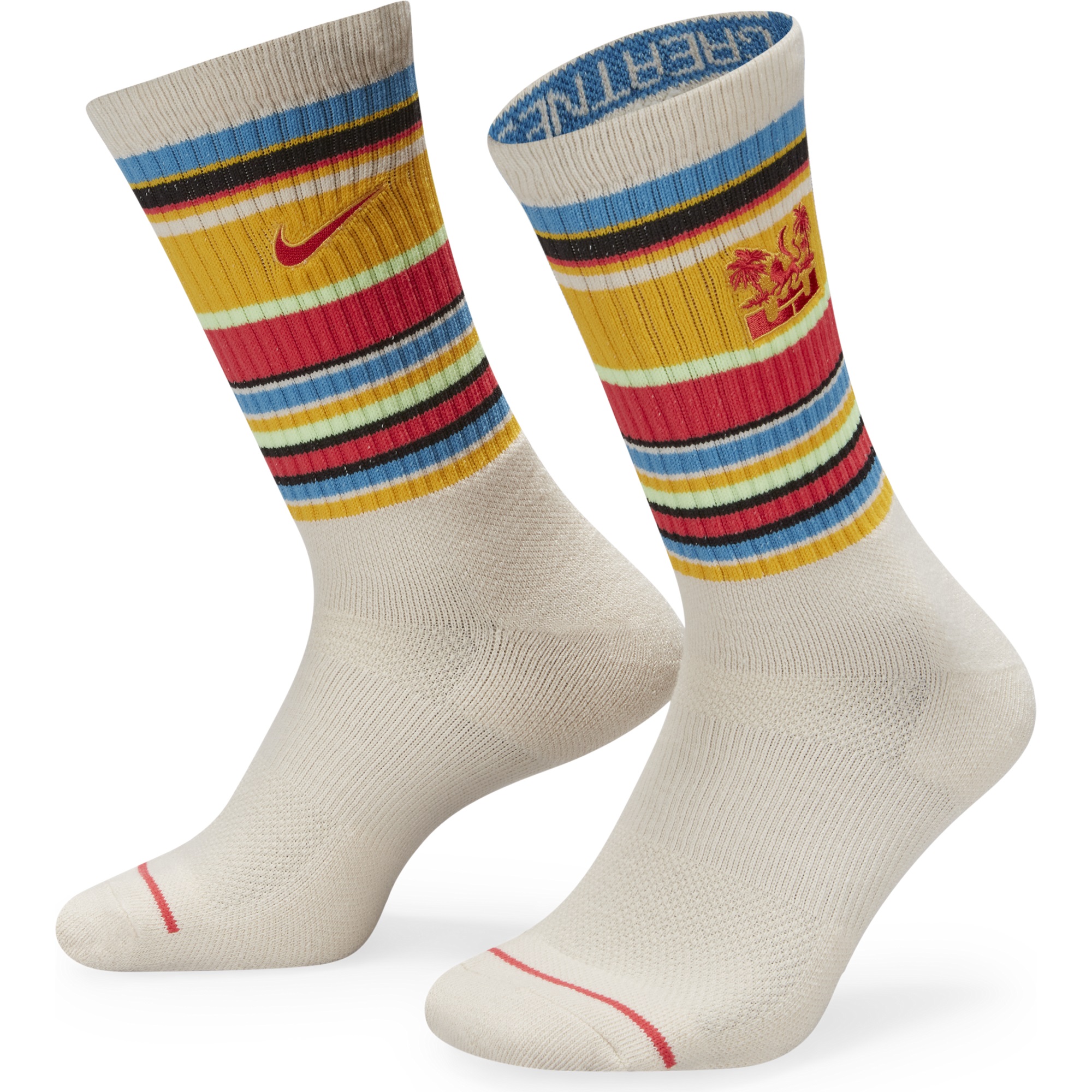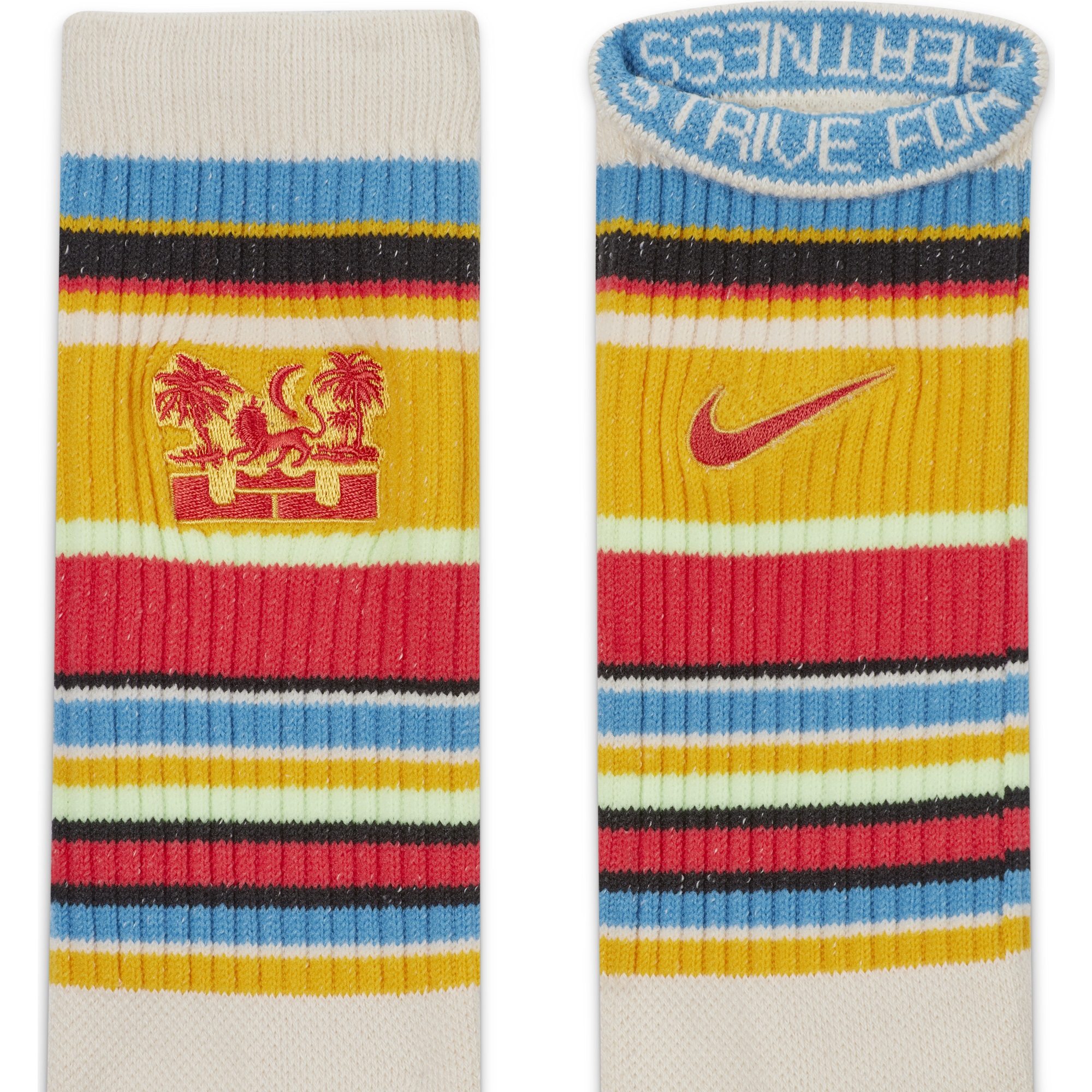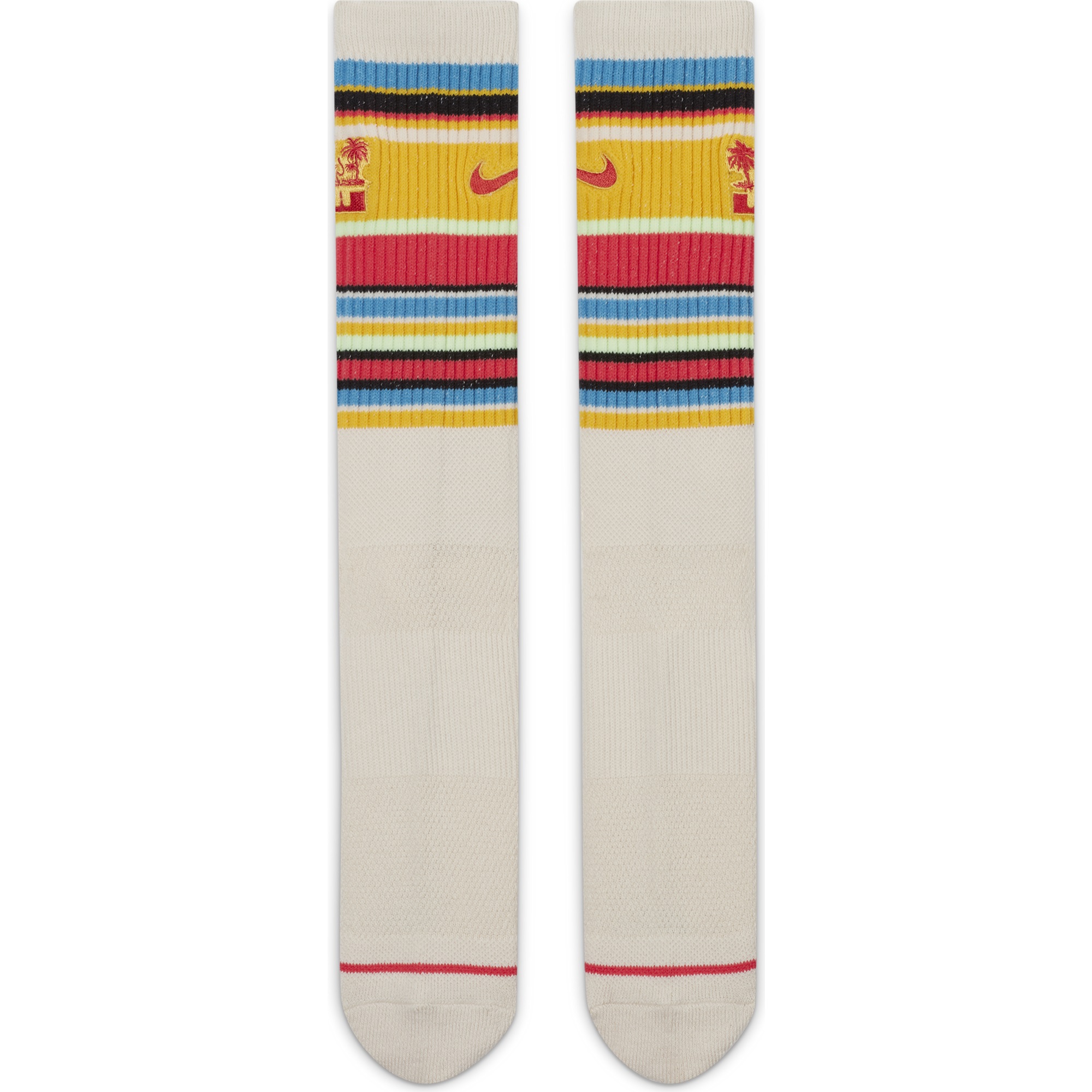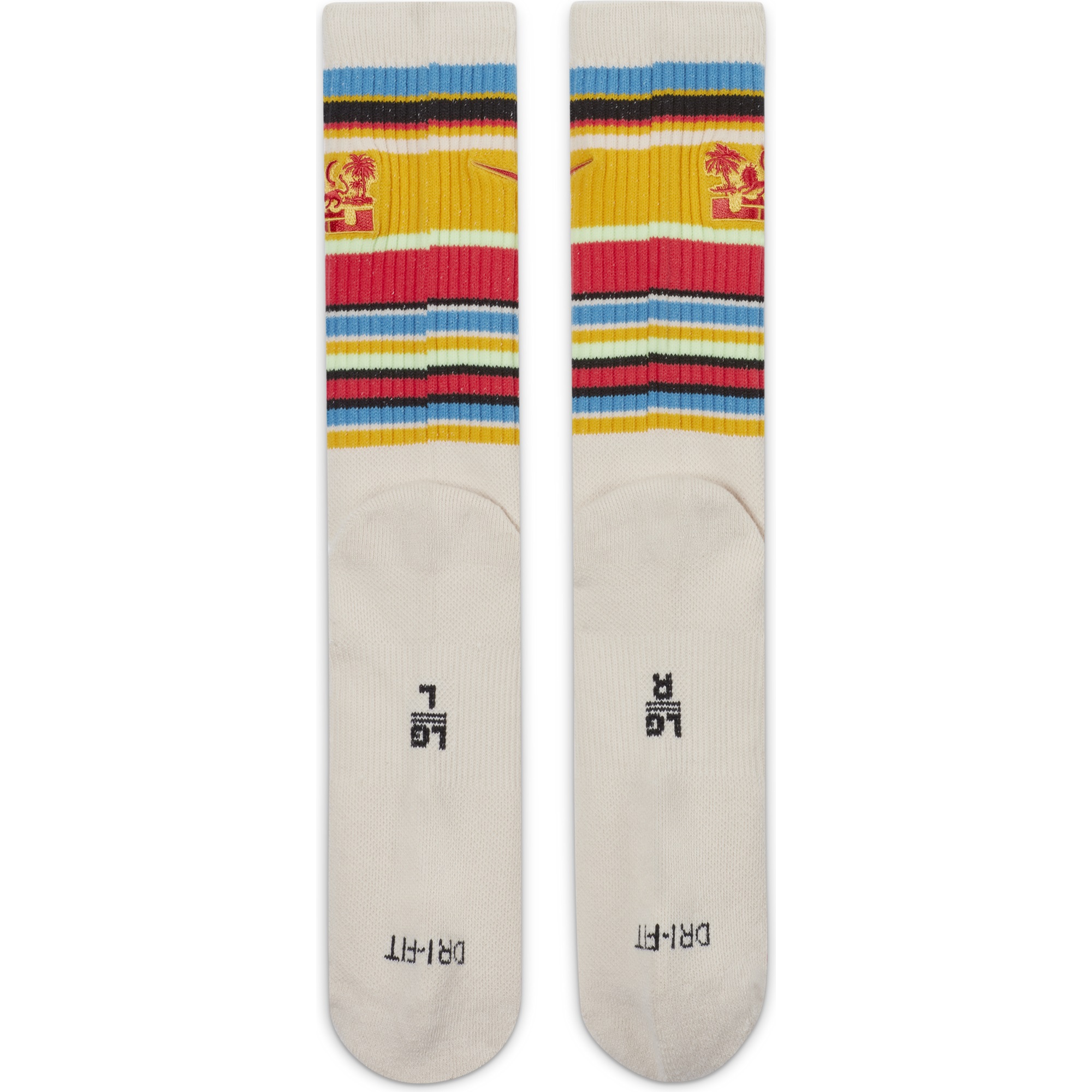 Walk in LeBron's footsteps in the LeBron Everyday Crew Socks. They hook to LeBron's seasonal apparel line, with colorful stripes inspired by sunny Southern California. Stretchy, sweat-wicking yarns feel soft and comfortable, and the ribbed leg and midfoot arch help them fit snugly.