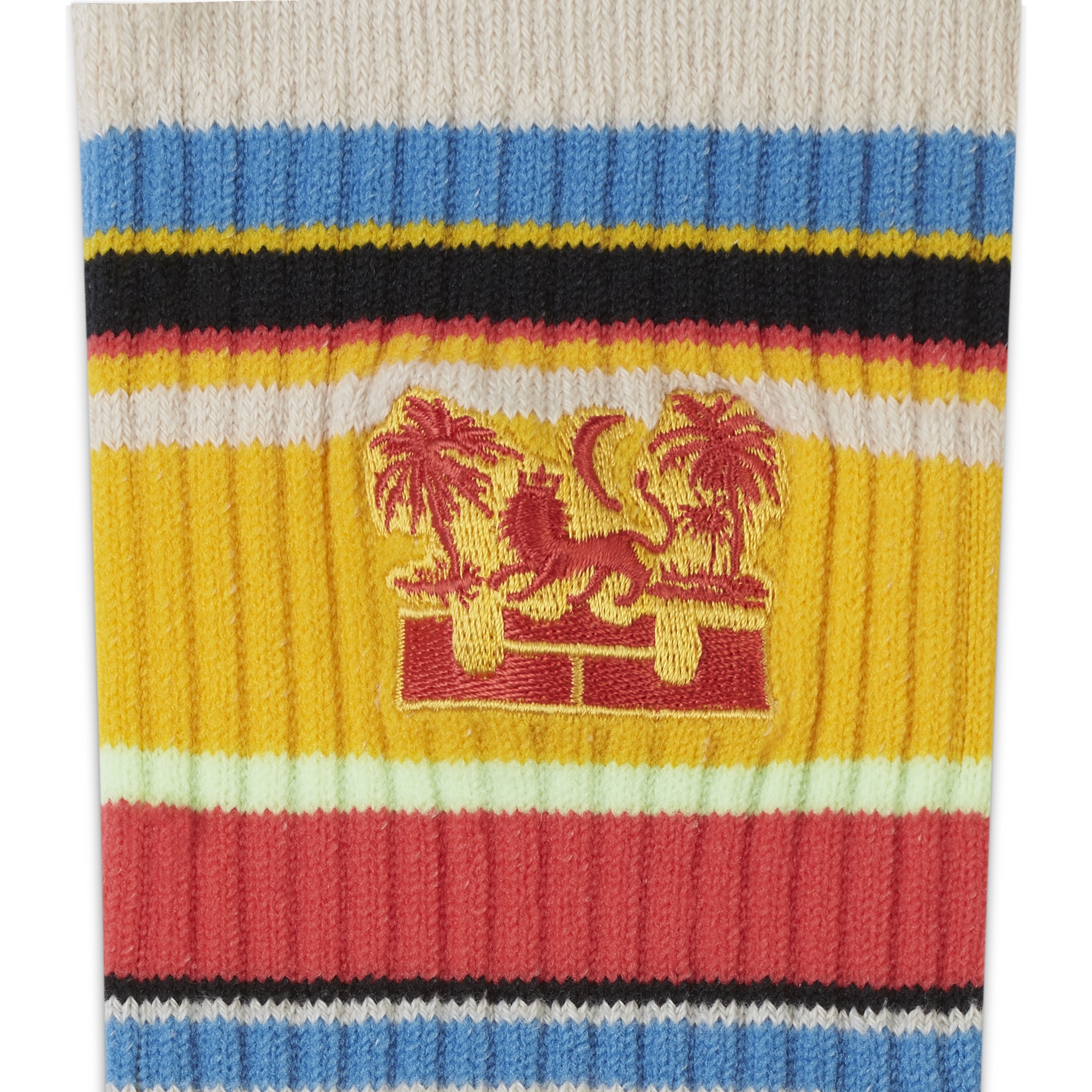 - Knit-in stripes